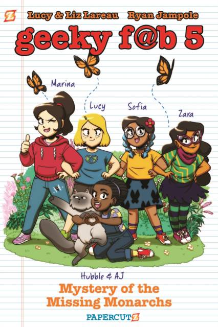 In their next adventure, the Geeky Fab Five discover a hidden garden filled with Monarch butterflies and honeybees. While the girls are learning in science class that Monarchs and bees are becoming endangered, something threatens their secret butterfly garden behind Earhart. To solve the mystery, Hubble the GFF mascot (and ever-so-curious cat) discovers a secret that gets him catnapped! In a race against time, the girls must rescue Hubble, save the garden, and solve the mystery of the missing Monarchs.