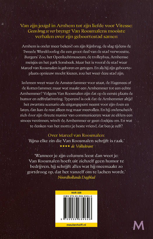 Arnhem is onder meer bekend om zijn Rijnbrug, de slag tijdens de Tweede Wereldoorlog die een groot deel van de stad verwoestte, Burgers’ Zoo, het Openluchtmuseum, de trolleybus, Arnhemse meisjes en het park Sonsbeek. Maar het is vooral de stad waar Marcel van Roosmalen is geboren en getogen. En als hij zijn geboorteplaats opnieuw mocht kiezen, zou het weer deze stad zijn.