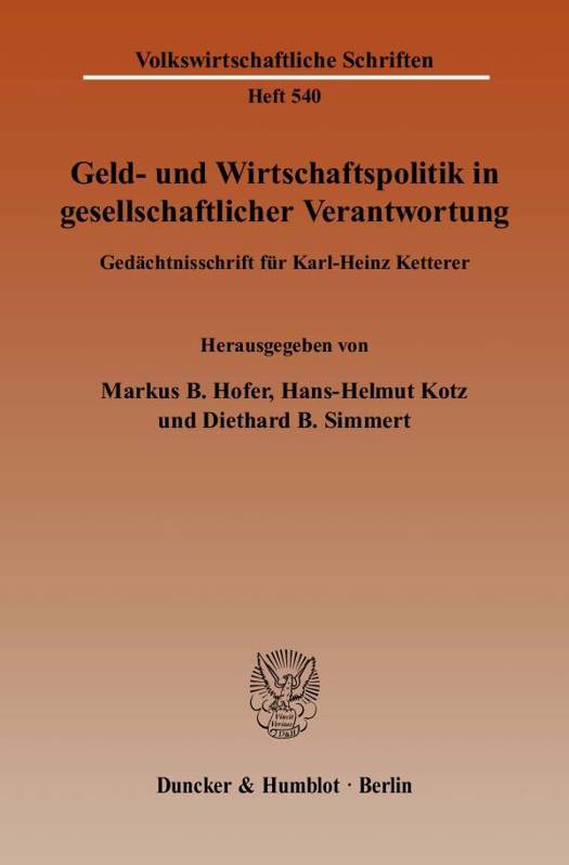 Mit der vorliegenden Gedächtnisschrift ehren Freunde, Weggefährten und Schüler Professor Dr. Karl-Heinz Ketterer, der bis 2003 im Verbund des Instituts für Wirtschaftspolitik und Wirtschaftsforschung an der Universität Karlsruhe tätig war. Der Band fasst seine Arbeitsschwerpunkte sowie sein Grundverständnis für Gerechtigkeit und gesellschaftliche Verantwortung zusammen. Gewürdigt werden die Verdienste eines engagierten Wissenschaftlers, der gerade den Zusammenhang zwischen Wirtschafts- und Geldpolitik immer wieder zum Thema seiner ökonomischen Analysen gemacht hat. Karl-Heinz Ketterer hat Lehre und Praxis stets in enger Verbindung gesehen. Seine Zeit bei der Deutschen Bundesbank war hier sicherlich prägend. Der Konnex zwischen Theorie und Anwendung spiegelt sich auch in den umfangreichen Veröffentlichungen wider. Exemplarisch sei an dieser Stelle auf seine Arbeiten zu Tobins q sowie die Projekte und Beiträge zum Thema elektronisches Geld verwiesen.