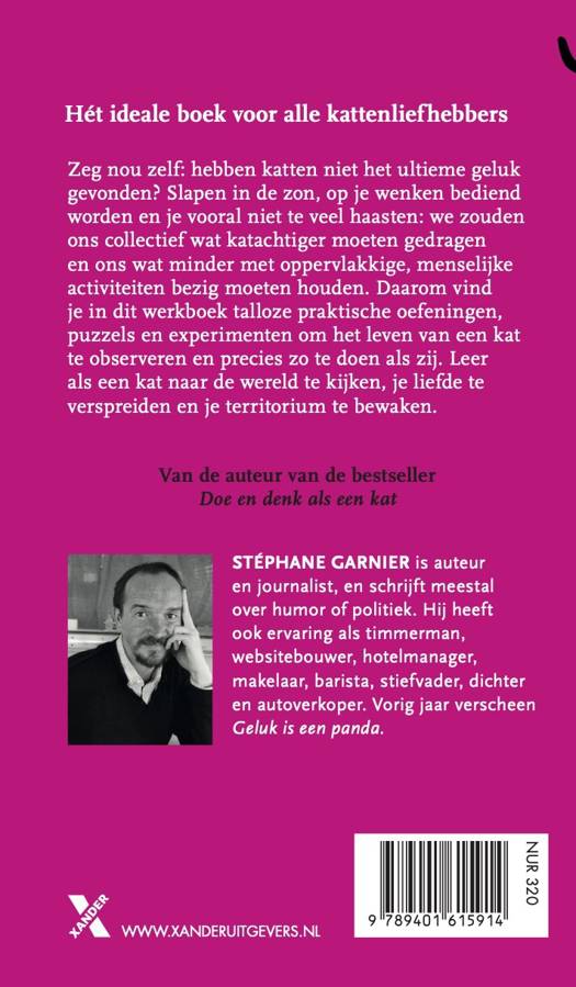 Zeg nou zelf: hebben katten niet het ultieme geluk gevonden? Slapen in de zon, op je wenken bediend worden en je vooral niet te veel haasten: we zouden ons collectief wat katachtiger moeten gedragen en ons wat minder met oppervlakkige, menselijke activiteiten bezig moeten houden. Daarom vind je in dit werkboek talloze praktische oefeningen, puzzels en experimenten om het leven van een kat te observeren en precies zo te doen als zij. Leer als een kat naar de wereld te kijken, je liefde te verspreiden en je territorium te bewaken.
