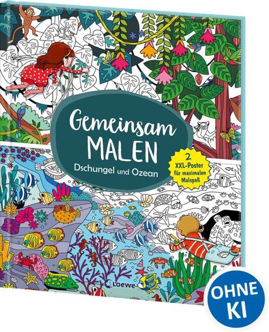 Euer kunterbuntes Kunstwerk Seht ihr die Delfine, die aus dem Wasser springen? Oder die Affen, die durch den wilden Dschungel schwingen? Diese und viele andere tierische Details sorgen für extragroßen Ausmalspaß. Schnappt euch eure Stifte und gestaltet zusammen zwei farbenfrohe Poster! - Das gemeinsame Malerlebnis für Freunde und die ganze Familie! - 2 XXL-Poster zum Heraustrennen - Detailreiche Motive