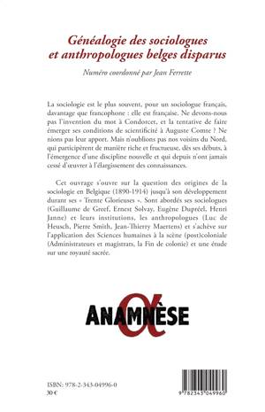 La sociologie est davantage que francophone, elle est française. Mais n'oublions pas nos voisins du Nord qui y contribuèrent. L'ouvrage s'ouvre sur les origines de la sociologie belge (1890-1914) et son développement, avec ses sociologues (G. de Greef, E. Solvay, E. Dupréel, H. Janne), ses anthropologues (L. de Heusch, P. Smith, J.-T. Maertens) et s'achève sur l'application des sciences humaines à la scène (post)coloniale.