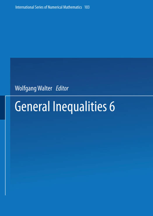 The sixthInternational Conference on General Inequalities was held from Dec. 9 to Dec. 15, 1990, at the Mathematisches Forschungsinstitut Oberwolfach (Black Fa- rest, Germany). The organizing committee was composed of W.N. Everitt (Birm- ingham), L. Losonczi (Debrecen) and W. Walter (Karlsruhe). Dr. A. Kovacec ( Coimbra) served cheerfully and efficiently as secretary of the meeting. The con- ference was attended by 44 participants from 20 countries. Yet again the importance of inequalities in both pure and applied mathematics was made evident from the wide range of interests of the individual participants, and from the wealth of new results announced. New inequalities were presented in the usual spread of the subject areas now expected for these meetings: Classical and functional analysis, existence and boundary value problems for both ordinary and partial differential equations, with special contributions to computer science, quantum holography and error analysis. More strongly than ever, the role played by modern electronic computers was made clear in testing out and prohing into the validity and structure of certain inequalities. Here the computer acts not only for numerical calculations of great complexity, but also in symbolic manipulation of complex finite structures. Prob- lems in inequalities which even a few years ago were intractable, now fall to solution or receive direct and positive guidance as a result of computer applications. The interface between finite and infinite structures in mathematics and the versatility of modern computers is weil developed in the subject of general inequalities.