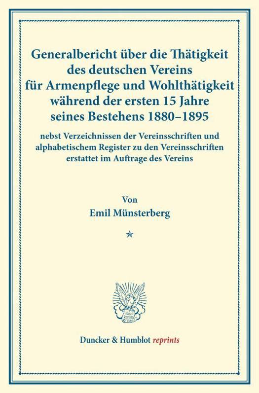 Generalbericht Uber Die Thatigkeit Des Deutschen Vereins Fur Armenpflege Und Wohlthatigkeit Wahrend Der Ersten 15 Jahre Seines Bestehens 1880-1895
