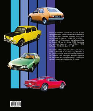 Des modèles que vous avez peut-être possédés ou qui vous ont fait rêver : de la Renault 5 ou la Fiat 127 jusqu’à la DS 23 et à la Renault 30 TX en passant par la Peugeot 304 ou la Renault 12 et la Simca 1100. Pourquoi pas des sportives avec l’Alpine A310, la Porsche 911 S et la Dino Ferrari 2,4 litres ? Les années 1970 marquent une brutale rupture entre l’optimisme de la décennie précédente et les questionnements de la suivante. Dans ces pages, vous allez retrouver le parfum de ces années parées de couleurs vives destinées certainement à nous faire oublier la grisaille des événements qui ont failli faire disparaître l’automobile.
