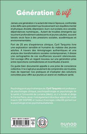 Ce livre s’attache à explorer en profondeur les mécanismes à l’origine de ces troubles, offrant une vision unique qui lie santé mentale et santé physique, considérées comme deux versants d’une même réalité. En s’appuyant sur les dernières recherches, cet ouvrage propose une lecture nouvelle de la santé mentale des jeunes, ancrée dans les défis écologiques et les transformations sociales de notre époque.