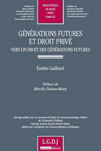 Le concept de générations futures pénètre le droit privé contemporain. Des dispositions à dimension transgénérationnelle apparaissent et révèlent le dépassement du paradigme temporel du droit selon lequel le droit privé ne peut et ne doit régir l'avenir. Cette évolution entraîne un décloisonnement des concepts, des notions et principes traditionnels juridiques.