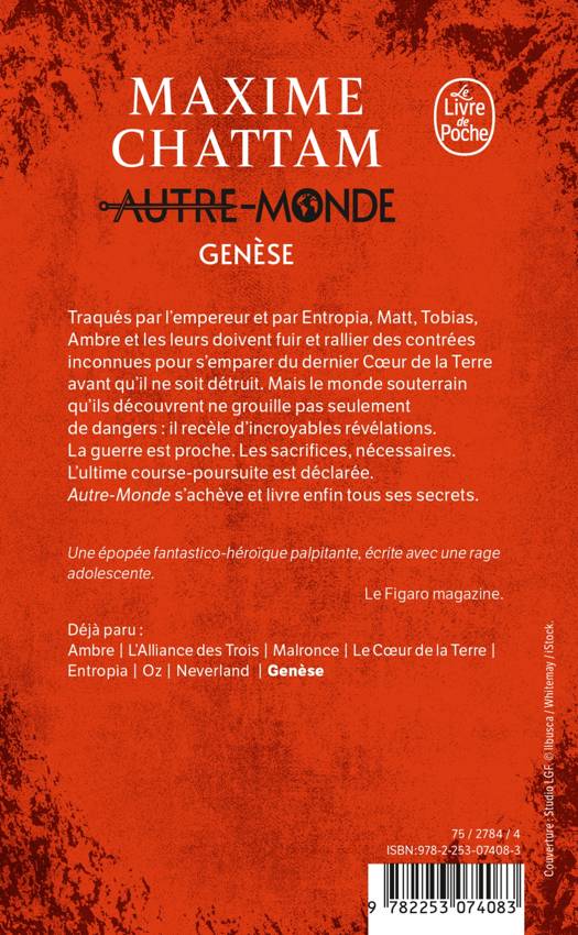 Traqués par l’empereur et par Entropia, Matt, Tobias, Ambre et les leurs doivent fuir et rallier des terres inconnues pour s’emparer du dernier Coeur de la Terre avant qu’il ne soit détruit. Mais le monde souterrain qu’ils découvrent ne grouille pas seulement de dangers. Il recèle d’incroyables révélations. La guerre est proche. Les sacrifices nécessaires. L’ultime course-poursuite est déclarée. Autre-Monde s’achève et livre enfin tous ses secrets.