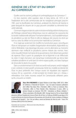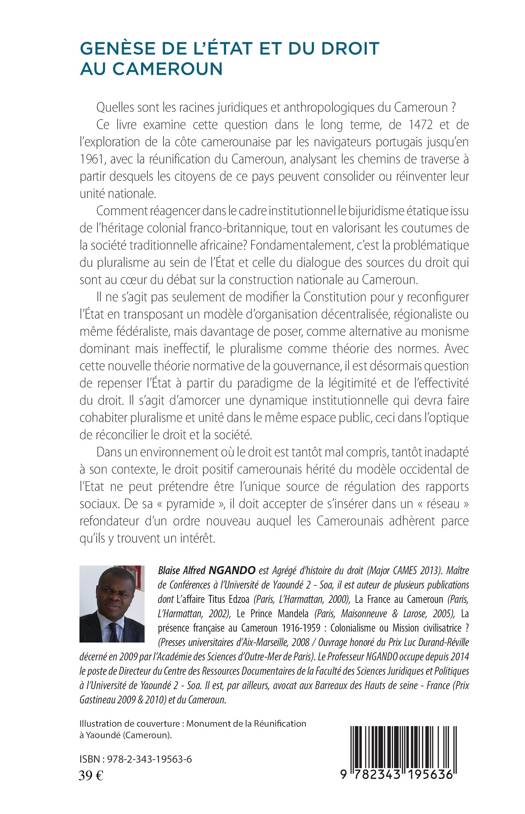 Quelles sont les racines juridiques et anthropologiques du Cameroun ? Ce livre examine cette question dans le long terme, de 1472 et de l'exploration de la côte camerounaise par les navigateurs portugais jusqu'en 1961, avec la réunification du Cameroun, analysant les chemins de traverse à partir desquels les citoyens de ce pays peuvent consolider ou réinventer leur unité nationale. Comment réagencer dans le cadre institutionnel le bijuridisme étatique issu de l'héritage colonial franco-britannique, tout en valorisant les coutumes de la société traditionnelle africaine ?
