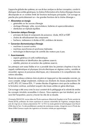 L’approche globale des systèmes, en vue de leur analyse ou de leur conception, conduit à distinguer deux entités génériques, la chaîne d’information et la chaîne d’énergie chacune décomposée en un nombre limité de fonctions techniques principales. Cet ouvrage se penche plus particulièrement sur « les grandes fonctions de la chaîne d’énergie ».