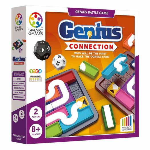 Genius Connection est un jeu de réflexion qui vous met au défi de surpasser votre adversaire tout en faisant preuve de rapidité d'esprit. Lancez les dés et relevez des défis aléatoires, ou explorez les 576 énigmes basées sur des cartes, allant de facile à difficile. Êtes-vous sur la bonne voie ? Que vous jouiez avec un ami ou en solo, Genius Connection est un ajout incontournable à votre collection SmartGames.