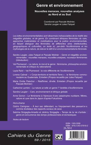 Les luttes environnementalistes sont désormais indissociables de la réalité des inégalités globales, et de genre. En combinant éthiques féministes du care, approches matérialistes et mobilisations pour la justice environnementale, en faisant dialoguer des féministes de différentes aires intellectuelles, géographiques et culturelles, on tente ici, par-delà l'écoféminisme et les mythologies de la nature, de relever le défi d'un environnementalisme féministe.