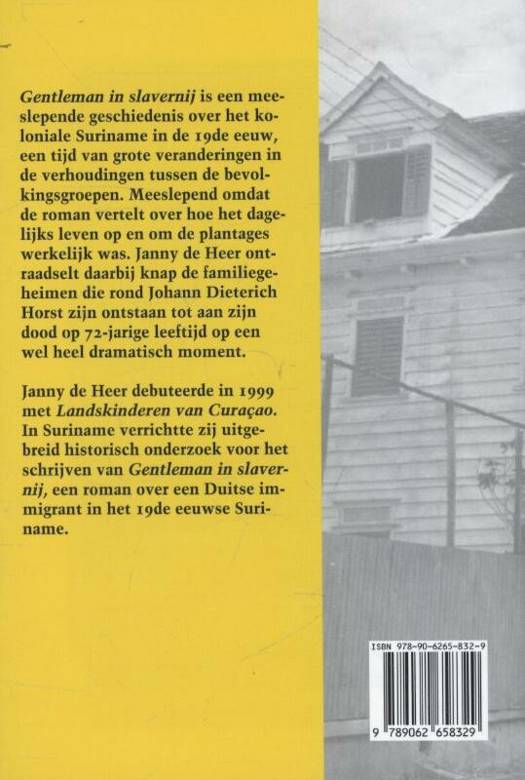 Gentleman in slavernij is een meeslepende geschiedenis over het koloniale Suriname in de 19de eeuw, een tijd van grote veranderingen in de verhoudingen tussen de bevolkingsgroepen. Meeslepend omdat de roman vertelt over hoe het dagelijks leven op en om de plantages werkelijk was. Janny de Heer ontraadselt daarbij knap de familiegeheimen die rond Johann Dieterich Horst zijn ontstaan tot aan zijn dood op 72-jarige leeftijd op een wel heel dramatisch moment.