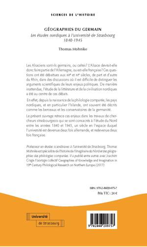 Le présent ouvrage retrace ces enjeux dans les travaux de chercheurs strasbourgeois qui se sont consacrés à l'étude du Nord entre les années 1840 et 1945, un siècle en l'espace duquel l'université est devenue deux fois allemande, et redevenue deux fois française.