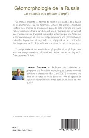 Ce manuel présente les formes de relief et de modelé de la Russie et les phénomènes qui les façonnent. L'étude des grandes structures précède celle d'échelle moyenne. Elle se poursuit par l'évolution des versants et les grands agents de transport et se termine par une focale sur le domaine pergélisol. Cette géomorphologie culturelle linguistique et régionale ne néglige pas les contraintes d'aménagement du territoire ni la mise en valeur du patrimoine paysager.