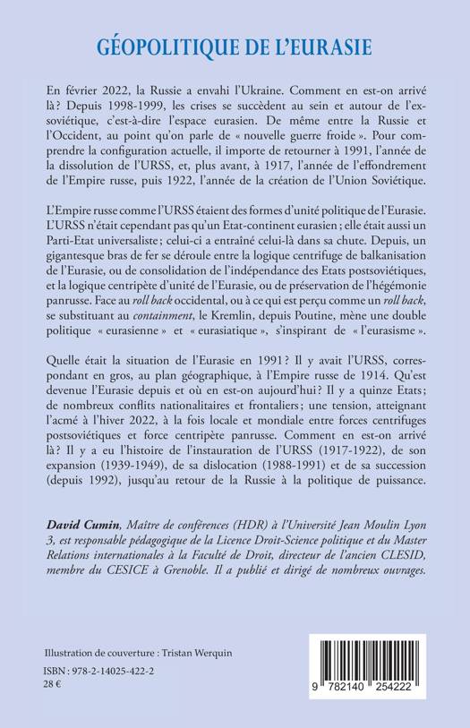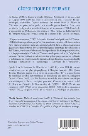 En février 2022, la Russie a envahi l'Ukraine. Comment en est-on arrivé là ? Depuis 1998-1999, les crises se succèdent au sein et autour de l'ex-soviétique, c'est-à-dire l'espace eurasien. De même entre la Russie et l'Occident, au point qu'on parle de « nouvelle guerre froide ». Pour comprendre la configuration actuelle, il importe de retourner à 1991, l'année de la dissolution de l'URSS, et, plus avant, à 1917, l'année de l'effondrement de l'Empire russe, puis 1922, l'année de la création de l'Union Soviétique. L'Empire russe comme l'URSS étaient des formes d'unité politique de l'Eurasie. L'URSS n'était cependant pas qu'un Etat-continent eurasien ; elle était aussi un Parti-Etat universaliste ; celui-ci a entraîné celui-là dans sa chute. Depuis, un gigantesque bras de fer se déroule entre la logique centrifuge de balkanisation de l'Eurasie, ou de consolidation de l'indépendance des Etats postsoviétiques, et la logique centripète d'unité de l'Eurasie, ou de préservation de l'hégémonie panrusse. Face au roll back occidental, se substituant au containment, le Kremlin, depuis Poutine, mène une double politique « eurasienne » et « eurasiatique », s'inspirant de « l'eurasisme ».