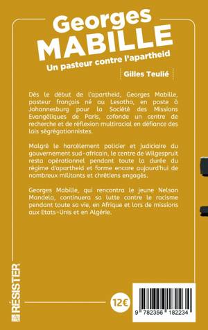 Dès le début de l'apartheid, Georges Mabille, pasteur français né au Lesotho, en poste à Johannesburg pour la Société des Missions Evangéliques de Paris, cofonde un centre de recherche et de réflexion multiracial en défiance des lois ségrégationnistes.