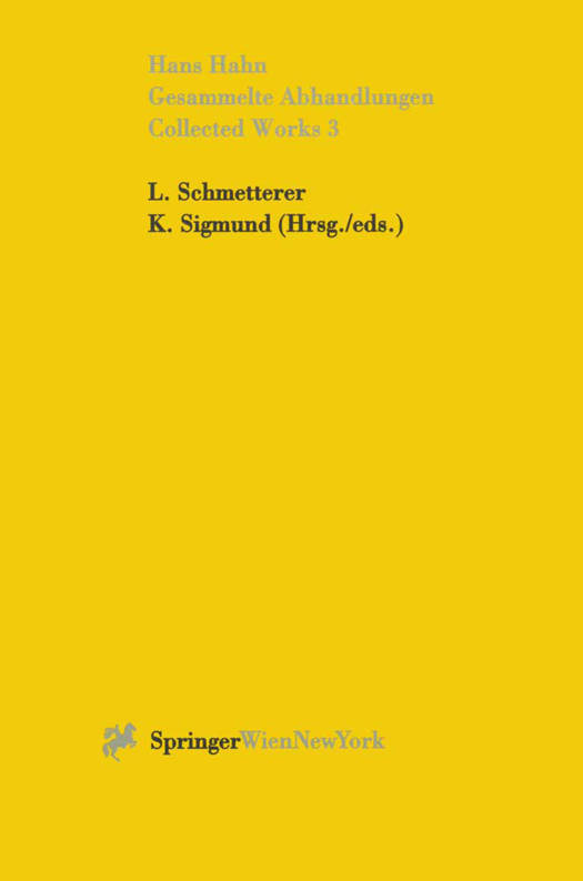 His seminal contributions to functional analysis and general topology had a huge impact on the development of modern analysis. Hahn's passionate interest in the foundations of mathematics, vividly described in Sir Karl Popper's foreword (which became his last essay), had a decisive influence upon Gödel. Like Freud, Musil and Schönberg, Hahn became a pivotal figure in the feverish intellectual climate of Vienna between the two wars. Volume 1: The first volume of Hahn's Collected Works contains his path-breaking contributions to functional analysis, the theory of curves, and ordered groups. These papers are commented on by Harro Heuser, Hans Sagan, and Laszlo Fuchs. Volume 2: The second volume deals with functional analysis, real analysis and hydrodynamics.The commentaries are written by Wilhelm Frank, Davis Preiss, and Alfred Kluwick. Volume 3: In the third volume, Hahn's writings on harmonic analysis, measure and integration, complex analysis and philosophy are collected and commented on by Jean-Pierre Kahane, Heinz Bauer, Ludger Kaup, and Christian Thiel. This volume also contains excerpts of Hahn's letters and accounts by his students and colleagues.