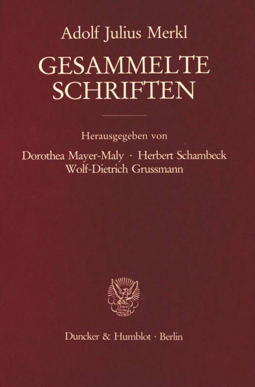 Für das Gesamtwerk von Adolf Julius Merkl (1890-1970) gilt die besonders in der Rechtswissenschaft allgemein gültige Feststellung: In der Leistung eines Wissenschaftlers spiegelt sich ein von seinem Fachgebiet ausgehendes Bemühen, der Zeitverantwortung zu entsprechen, wider. Die Auseinandersetzung mit dem Ordnungs-, Rechts- und Staatsbewußtsein der jeweiligen Zeit kann sowohl eine literarische wie eine normative Bedeutung erlangen und als Beitrag zum Grundsatzdenken von allgemeiner Bedeutung werden. Beides trifft in besonderem Maße auf den Mitbegründer der Wiener rechtstheoretischen Schule, Adolf Julius Merkl, zu.