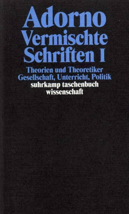 ERSTE HÄLFTEI. Theorien und Theoretiker / Neue wertfreie Soziologie / Zur Philosophie Husserls / Husserl and the Problem of Idealism / »Kulturanthropologie« / Wird Spengler recht behalten? / Max Horkheimer (Max Horkheimer / Radiorede über Max Horkheimer / Offener Brief an Max Horkheimer / Gratulor / Eine unterdrückte Vorrede) / Walter Benjamin (Zu Benjamins Gedächtnis / Nachwort zur »Berliner Kindheit um Neunzehnhundert« / Erinnerungen / Vorrede zu Rolf Tiedemanns »Studien zur Philosophie Walter Benjamins« / Interimsbescheid / A l'écart de tous les courants) / Für Ernst Bloch / Nach Kracauers Tod / Oswald Spengler, Der Mensch und die Technik / Alfred Kleinberg, Die europäische Kultur der Neuzeit / Herbert Marcuse, Hegels Ontologie und die Grundlegung einer Theorie der Geschichtlichkeit / Bernhard Groethuysen, Die Entstehung der bürgerlichen Welt- und Lebensanschauung in Frankreich / Hans Driesch, Philosophische Gegenwartsfragen / Theodor Steinbüchel, Das Grundproblem der Hegelschen Philosophie / Nicolai Hartmann, Das Problem des geistigen Seins,u. a. [Sammelbesprechung] / Walter Ehrenstein, Einführung in die Gestaltpsychologie / Philosophy and History. Essays presented to Ernst Cassirer / Roger Caillois, La Manie religieuse / Erich Rothacker, Die Schichten der Persönlichkeit / Jean Wahl, Etudes Kierkegaardiennes, u.a. [Sammelbesprechung] / Wilhelm Grebe, Der tätige Mensch / G. P. Adams, u.a., Knowledge and Society / Maximilian Beck, Psychologie / Richmond Laurin Hawkins, Positivism in the United States 1853-1861 / Heinrich Rickert, Unmittelbarkeit und Sinndeutung / Ad Lukács / Fällige Revision / Zu Ulrich Sonnemanns »Negativer Anthropologie«II. Gesellschaft, Unterricht, PolitikDemocratic Leadership and Mass Manipulation / Individuum und Staat / Öffentliche Meinung und Meinungsforschung / Zum Problem der Familie / Über Technik und Humanismus / Zum Studium der Philosophie / Aktualität der Erwachsenenbildung / Zur Demokratisierung der deutschen Universit