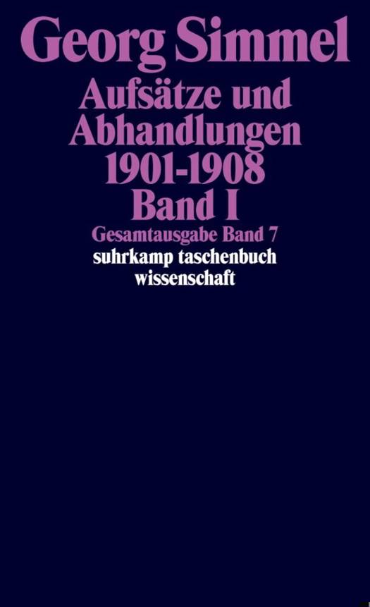 Die im (...) ersten Band der "Aufsätze und Abhandlungen 1901- 1908" zum Abdruck gebrachten Texte umfassen alle von Georg Simmel namentlich gekennzeichneten deutschsprachigen Aufsätze und Abhandlungen, die erstmals in den Jahren 1901 bis 1905 in Zeitungen, Zeitschriften und Jahrbüchern erschienen sind. (...) Im vorliegenden Band finden sich neben vier soziologischen Abhandlungen, die jedoch so umfänglich sind, daß sie ein Drittel dieses Bandes füllen, elf kunstphilosophische Studien, sechs philosophische, fünf religionswissenschaftliche und drei kulturphilosophische Beiträge.(aus: Edit. Bericht, S. 351 ff.)