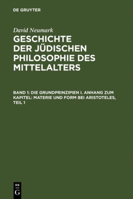 Band 1: Die Grundprinzipien I. Anhang Zum Kapitel: Materie Und Form Bei Aristoteles. Band 2: Die Grundprinzipien II/1,2