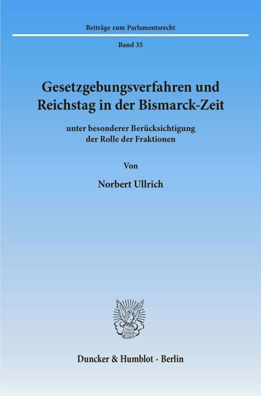 Der Reichstag war im Kaiserreich (gemeinsam mit dem Bundesrat) zentrales Organ der Gesetzgebung. Die vorliegende Arbeit untersucht für die Bismarck-Zeit (1867-1890), wie dieses Parlament auf das Entstehen von Gesetzen einwirkte. Dabei steht die maßgebliche Rolle der Fraktionen im Mittelpunkt. Punktuelle Vergleiche mit Bundestag und Gesetzgebung heute sorgen für aktuellen Bezug. Der Autor bedient sich zur Erfassung der historischen wie juristischen Aspekte sowohl zeitgenössischer staatsrechtlicher Literatur als auch der Stenographischen Berichte über die Verhandlungen des Reichstags, Memoirenwerke (v. a. Reichstagsabgeordneter) und Fraktionsunterlagen.