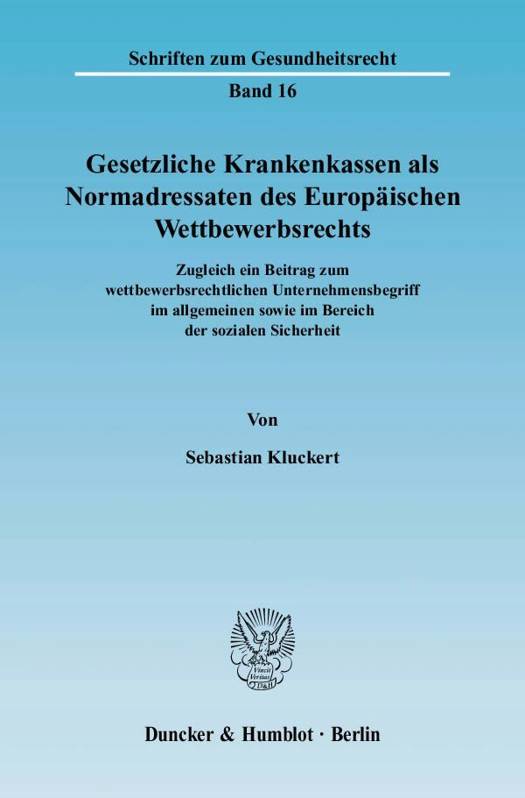Sebastian Kluckert untersucht auf der Grundlage der Rechtsprechung des Europäischen Gerichtshofes, insbesondere nach den Urteilen AOK Bundesverband und FENIN, ob und inwiefern deutsche gesetzliche Krankenkassen noch Normadressaten des Europäischen Wettbewerbsrechts sein können. Zugleich vertieft er die dogmatischen Grundlagen des wettbewerbsrechtlichen Unternehmensbegriffs im allgemeinen sowie im Bereich der sozialen Sicherheit. In Exkursen arbeitet er dabei die Parallelen und Unterschiede zum deutschen Kartellrecht heraus. Der Autor untersucht im einzelnen die verschiedenen angebots- und nachfrageseitigen Tätigkeiten von Krankenkassen. Dabei beleuchtet er, wie sich Festbeträge, Mehrkostenregelungen, Festzuschüsse, Wahltarife, Finanzierungsregelungen oder Zusatzkrankenversicherungsangebote auf die wettbewerbsrechtliche Normadressatenstellung / Unternehmenseigenschaft auswirken. Im Ergebnis zeigt sich, daß Krankenkassen auf der Grundlage der Rechtsprechung des EuGH nur hinsichtlich bestimmter Tätigkeiten keine Normadressaten des Europäischen Wettbewerbsrechts sind, dagegen in vielen Tätigkeitsbereichen die Art. 81 ff. EG zu beachten haben. Die Arbeit berücksichtigt dabei schon die Rechtslage nach Inkrafttreten des GKV-Wettbewerbsstärkungsgesetztes (Gesundheitsreform 2007).
