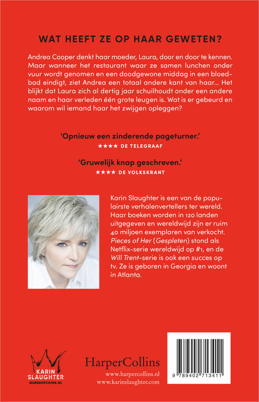 Gespleten nu als Pieces of Her te zien op Netflix, met Toni Collette en Bella Heathcote in de hoofdrol! Sterke personages, bloedstollende spanning, met verve en vakmanschap geschreven: dit is Karin Slaughter op haar best.