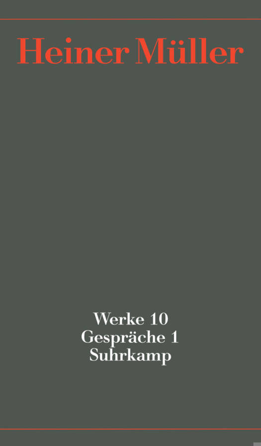 Nach den Gedichten, der Prosa, den Stücken, Schriften und der Autobiographie - basierend auf intensiven Gesprächen im Jahre 1991 - erscheinen zum Abschluß der Ausgabe Heiner Müllers in drei Bänden insgesamt 175 Interviews / Gespräche aus drei Jahrzehnten.Der erste Band der Abteilung Gespräche (Heiner Müller, Werke 10: Gespräche 1) umfaßt die Jahre 1965 bis 1987. Gesprächspartner sind u.a. Walter Höllerer, Urs Jenny, Hellmuth Karasek, Matthias Matussek, André Müller, Klaus Völker oder Uwe Wittstock. Behandelt werden Müllers Stücke und die Inszenierungen, seine Bearbeitungen, die Schwierigkeiten, auf die Müller stößt, und mehr.