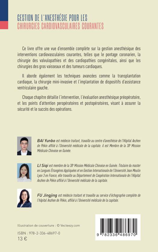 Ce livre offre une vue d’ensemble complète sur la gestion anesthésique des interventions cardiovasculaires courantes, telles que le pontage coronarien, la chirurgie des valvulopathies et des cardiopathies congénitales, ainsi que les chirurgies des gros vaisseaux et des tumeurs cardiaques. Il aborde également les techniques avancées comme la transplantation cardiaque, la chirurgie mini-invasive et l’implantation de dispositifs d’assistance ventriculaire gauche. Chaque chapitre détaille l’intervention, l’évaluation anesthésique préopératoire, et les points d’attention peropératoires et postopératoires, visant à assurer la sécurité et le succès des opérations.