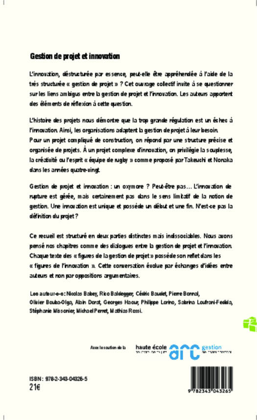 L'innovation, déstructurée par essence, peut-elle être appréhendée à l'aide de la très structurée "gestion de projet" ? L'histoire des projets nous démontre que la trop grande régulation est un échec à l'innovation. Ainsi, les organisations adaptent la gestion de projet à leur besoin. Pour un projet compliqué de construction, on répond par une structure précise et organisée de projets. A un projet complexe d'innovation, on privilégie la souplesse, la créativité...