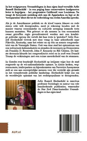 Als je de Amerikaanse politiek en de kloof tussen blauwe en rode staten echt wilt doorgronden, moet je rekening houden met de manier waarop economische en culturele neergang iemands trots kunnen aantasten. Wat gebeurt er als mensen in een economisch zwaar getroffen regio geconfronteerd worden met een krachtige politieke oproep die vertelt dat hun trots is 'gestolen'? Arlie Russell Hochschild vertrok met deze vraag in haar achterhoofd naar Pikeville, Kentucky, naar het witste en op één na armste congresdistrict van de Verenigde Staten. Ooit was deze stad een epicentrum van een welvarende kolenindustrie en stemden de inwoners op Democraten als Franklin D. Roosevelt, John F. Kennedy en Bill Clinton. De laatste decennia kleurde het congresdistrict rood en in 2016 won Donald Trump de verkiezingen met een ruime meerderheid van de stemmen.