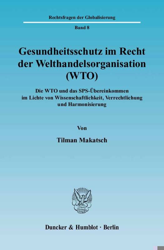 Vor diesem Hintergrund untersucht Tilman Makatsch die Funktionsweise der WTO, stellt Bezüge zum nationalen Recht her (insbesondere im Hinblick auf den Umgang mit Risiken und Naturwissenschaft sowie deren Justiziabilität), widmet sich der Weiterführung des Diskriminierungsverbotes, der zunehmenden Verrechtlichung des WTO-Systems sowie der Frage, inwieweit die internationale Harmonisierung von Schutzstandards im Rahmen der WTO vorstellbar ist. Die Arbeit bietet erkenntnisreiche neue Beobachtungen, Kritiken und Lösungsansätze.