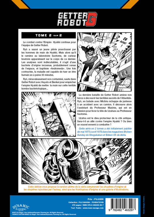 Ryô ramène un garçon visiblement blessé au laboratoire. Après des recherches il savère quil est contaminé par une infection dorigine artificielle provenant dune bombe bactériologique. Cette maladie, venue de lespace, est déjà connue des scientifiques et se nomme Andromeda. Cest une infection qui peut éradiquer lhumanité en un temps record. Léquipe Getter apprend alors que de nombreux scientifiques ont continué leurs recherches sur cette infection, de même que lEmpire Hyakki. Cest même eux qui, suite au crash de lun de leurs véhicules, ont répandu la bactérie et contaminé le jeune homme. Léquipe du Getter Robot G doit alors empêcher lEmpire de diffuser ce poison sur la Terre et récupérer les derniers conteneurs contenant la bactérie pour éviter le désastre. Encore plus dangereux et mortel, cest un nouveau défi qui attend léquipe de Getter Robot G. Ce volume conclut la série.