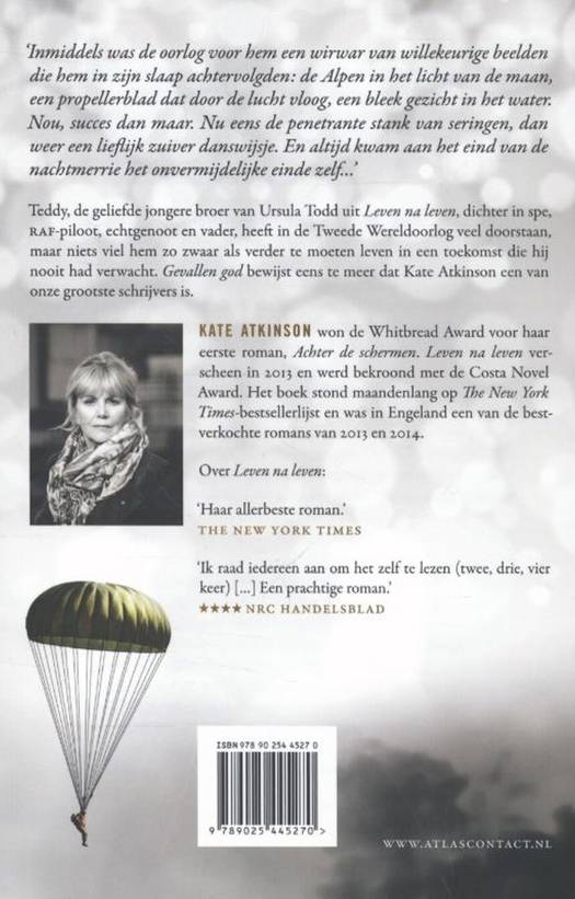 Teddy, de geliefde jongere broer van Ursula Todd uit Leven na leven, dichter in spe, RAF-piloot, echtgenoot en vader, heeft in de Tweede Wereldoorlog veel doorstaan, maar niets viel hem zo zwaar als verder te moeten leven in een toekomst die hij nooit had verwacht. Gevallen god bewijst eens te meer dat Kate Atkinson een van onze grootste schrijvers is.