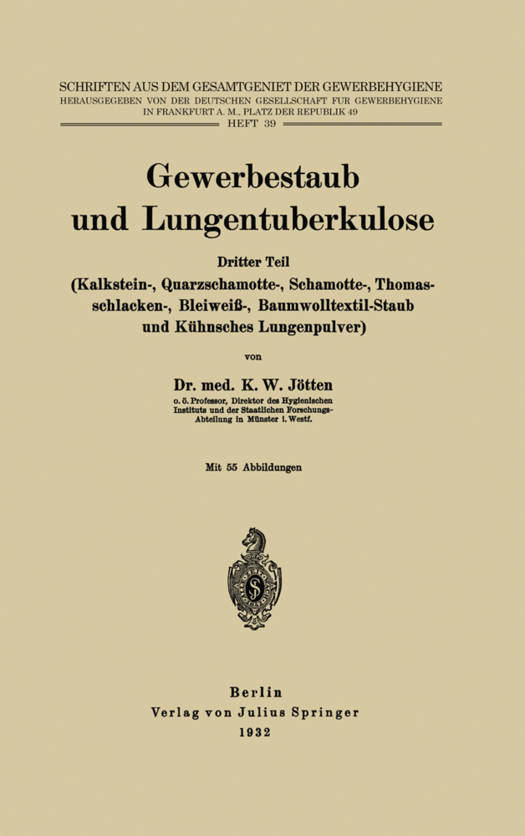 Dritter Teil: (Kalkstein-, Quarzschamotte-, Schamotte-, Thomasschlacken-, Bleiweiß-, Baumwolltextil-Staub Und Kühnsches Lungenpulver)