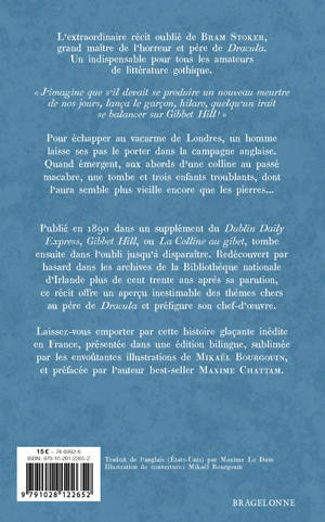 Publié en 1890 dans un supplément du Dublin Daily Express, Gibbet Hill, ou La Colline au gibet, tombe ensuite dans l'oubli jusqu'à disparaître. Redécouvert par hasard dans les archives de la Bibliothèque nationale d'Irlande plus de cent trente ans après sa parution, ce récit offre un aperçu inestimable des thèmes chers au père de Dracula et préfigure son chef-d'oeuvre.