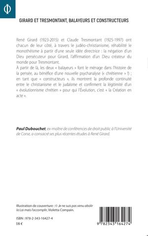 René Girard (1923-2015) et Claude Tresmontant (1925-1997) ont chacun de leur côté, à travers le judéo-christianisme, réhabilité le monothéisme à partir d'une seule idée directrice : la négation d'un Dieu persécuteur pour Girard, l'affirmation d'un Dieu créateur du monde pour Tresmontant. A partir de là, les deux « balayeurs » font le ménage dans l'histoire de la pensée, au bénéfice d'une nouvelle psychanalyse (« chrétienne » !) ; en tant que « constructeurs », ils montrent la profonde continuité entre le christianisme et le judaïsme et confirment la légitimité d'un « évolutionnisme chrétien » pour qui l'Evolution, c'est « la Création en acte ».