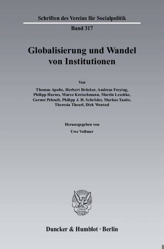 "Globalisierung" ist ein Schlagwort, mit dem sowohl Ängste als auch Hoffnungen verbunden sind. Befürworter erwarten Wohlfahrtsgewinne durch verbesserte internationale Arbeitsteilung. Kritiker befürchten negative Umverteilungseffekte zu Lasten vor allem von Entwicklungs- und Schwellenländern. Ausgelöst wurde die Globalisierung durch technischen Fortschritt und durch institutionellen Wandel. Sie hat zugleich aber auch zu institutionellem Wandel geführt.Vor allem dieser letzte Aspekt ist Gegenstand des vorliegenden Bandes, dessen erster Teil den Zusammenhang zwischen Globalisierung und Wandel von politischen Institutionen beispielhaft beleuchtet. Behandelt werden mögliche Gründe für eine selektive Migrationspolitik, die Auswirkungen von Schuldenerlassprogrammen auf die politischen Entscheidungsprozesse in Entwicklungsländern sowie der Zusammenhang zwischen Wechselkursregime und Wirtschaftswachstum.Im zweiten Teil des Bandes analysieren die Autoren den Zusammenhang zwischen Globalisierung und Wandel von Institutionen im Markt. Es wird gefragt, welche Bedeutung die Internationalisierung der Wirtschaft für das Herausbilden hybrider Unternehmensformen und deren Standortpolitik hat und welche Gründe zum Wandel von Unternehmensformen im Transformationsprozess der Volksrepublik China geführt haben.