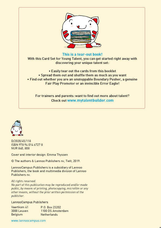 We all have talents, but we don't always know what they are. As a result, talent is sometimes a difficult concept to grasp - but one that we need to understand if we are to make the most of our lives. This illustrated card set for young talent helps children to get to know themselves, and sets them on the path for discovering and engaging their particular talents. In a playful and informative process, the cards from the booklet are detached and shuffled. Find out whether a child's talent presents as an unstoppable Boundary Pusher, a genuine Fair Play Promoter, or an invincible Error Eagle! Understanding their unique talent profile will help children with choices at school, at home, with friends and family.