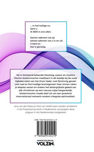 De in Duitsland bekende theoloog, auteur en mystica Marion Küstenmacher mediteert in dit boekje bij de oude bijbelse tekst van het Onze Vader, met fijnzinnig gevoel voor taal en het huidige levensgevoel. Haar zinnen raken je diepste wezen en maken het belangrijkste gebed van alle christenen op een nieuwe wijze toegankelijk. Küstenmacher maakt deel uit van een groeiend internationaal netwerk rondom integrale spiritualiteit.