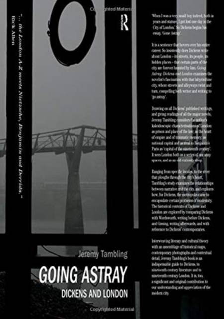 Going Astray: Dickens and London is a major new work of criticism that attempts a reading of Dickens's novels in the light of the study of London. Its guiding premise is that Dickens's novels not only use London as a background, but that they are about London, even when they seem not to be. Professor Tambling's close readings of the novels are interlaced with more theoretical meditations on the nature of the nineteenth century metropolis. It is, then, a study not only of Dickens, but of urban culture, too. The book is informed by theoretical studies of the city, chiefly Walter Benjamin's Arcades Project, and aims to give a reading of London that is as 'thick' as the reading Benjamin gave of Paris. Tambling's rich prose style, his inquiring mind, and his eye for the odd or arcane detail gives the book a peculiar and engaging eclecticism that is both scholarly and adventurous. The book is supported by almost 100 photographs of sites associated with Dickens's novels, taken especially for the book, and a selection of historical maps that are reproduced in detail and in full colour. The book closes with a fascinating gazetteer of Dickens's London. Rooted in a deep understanding of Dickens's novels and a thorough acquaintance with the city he chose as his subject, Going Astray bring an exciting new slant to an often clichéd area.