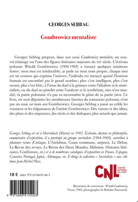 G. Sebbag propose, dans son essai Gombrowicz mentaliste, un nouvel éclairage sur l’une des figures littéraires majeures du XXe siècle. L’écrivain polonais Witold Gombrowicz (1904-1969) a énoncé quelques intuitions fortesâ: mon moi est irréductibleâ; je parle en mon nom propreâ; chaque moi est un cosmos qui exprime l’universâ; l’individu est menacé quand l’horizon humain est encombré par le grand nombreâ; plus c’est intelligent, plus c’est savant, plus c’est bêteâ; à l’issue du duel à la grimace entre l’idéaliste et le matérialiste, ou du duel au pistolet entre l’analyste et le synthétiste, rien n’est tranchéâ; la patrie polonaise n’a pas su reconnaître le génie de sa partie juive. Ce livre, où sont dépeintes les nombreuses facettes du romancier polonais, n’est pas un essai sur mais avec Gombrowicz. Sebbag a passé au crible les voyances et les fulgurances de l’artiste Gombrowicz. Des visions et des idées, des plans et des séquences, des récits et des dialogues, plus actuels que jamais.