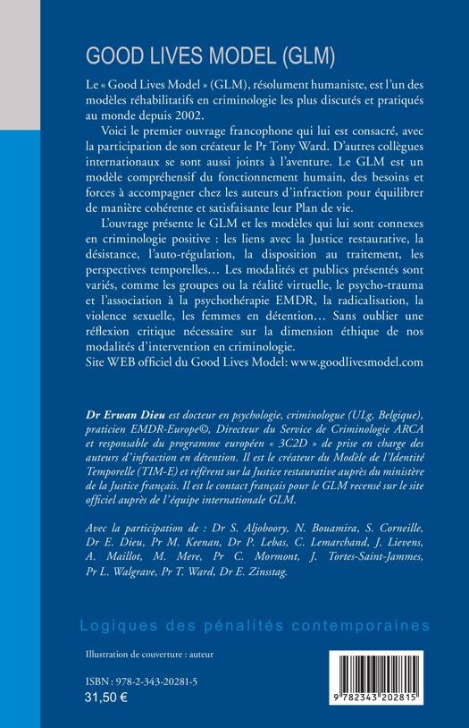 Le « Good Lives Model » (GLM) est l’un des modèles réhabilitatifs en criminologie les plus discutés et pratiqués au monde depuis 2002. Cet ouvrage est le premier sur le sujet dans l’espace francophone. Le GLM est un modèle compréhensif du fonctionnement humain visant à équilibrer de manière cohérente et satisfaisante le plan de vie des auteurs d’infraction. Cet ouvrage présente le GLM et les modèles qui lui sont connexes en criminologie positive : les liens avec la Justice restaurative, la désistance ou bien encore l’auto-régulation.