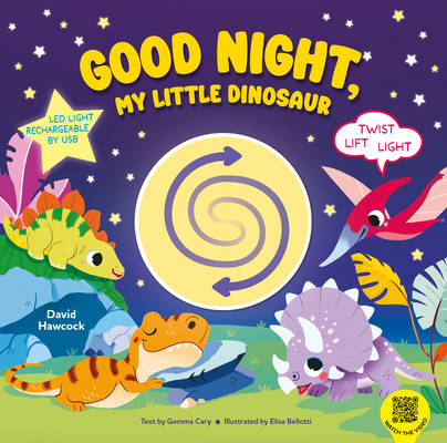 Good Night, My Little Dinosaur is more than just a bedtime book, it's a magical nighttime experience! Kids will meet eight adorable dinosaurs, like the stegosaurus, triceratops, tyrannosaurus, and more as they get ready for bed with dino-themed nursery rhymes. Each page invites little ones to snuggle up, wind down, and say goodnight to their prehistoric pals. But this magical book doesn't end with bedtime rhymes--the front cover doubles as a pop-up paper night light! It transforms from a flat surface to a three-dimensional paper lamp with an easy-to-use twist and pull mechanism. The night light comes with a built-in LED light and a USB-C rechargeable battery. When turned on, the dinosaur night light illuminates your child's room in a soft, warm glow all night long! In the morning, simply collapse the lamp and recharge for another night of dinosaur fun.