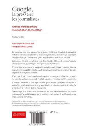 La presse ne peut plus aujourd’hui se passer de Google. En effet, le moteur de recherche influence directement la production journalistique dès lors que les éditeurs cherchent à ce que l’information qu’ils produisent soit trouvée sur Internet. Cet ouvrage présente les relations entre Google et les éditeurs de presse d’un point de vue technique, économique, juridique, social et politique.