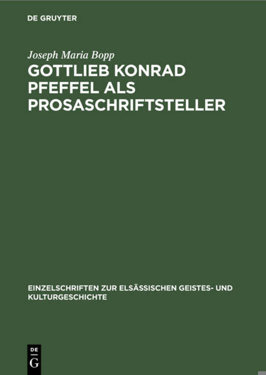 Gottlieb Konrad Pfeffel ALS Prosaschriftsteller