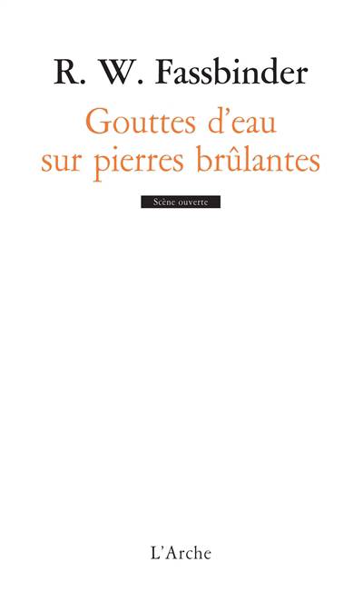 Une pièce incontournable de Fassbinder. Gouttes d'eau sur pierres brûlantes, pièce écrite par l'artiste à l'âge de dix-neuf ans, a connu un immense succès dans l'adaptation que François Ozon en fit en 2000 (Award à la Berlinale et Meilleur film gay et lesbien de New York pour les distinctions).