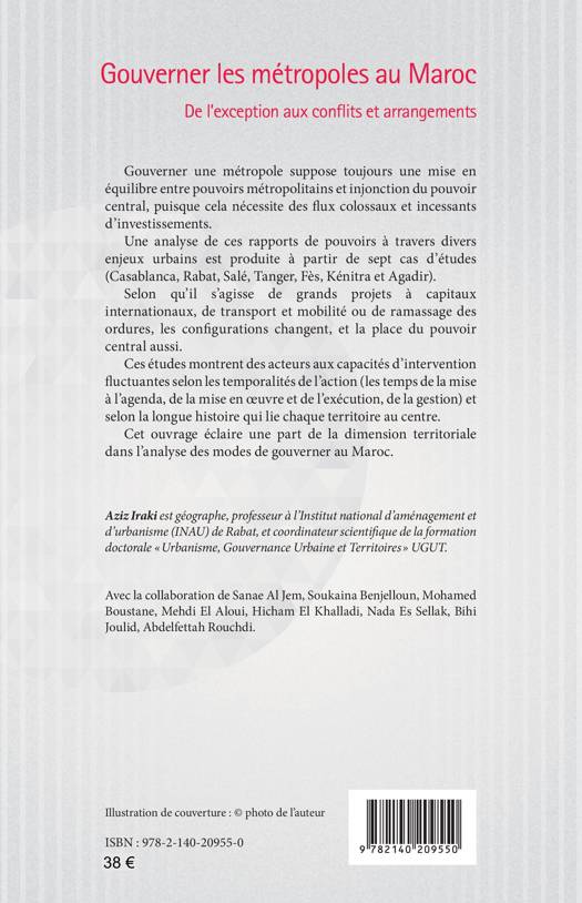 Gouverner une métropole suppose toujours une mise en équilibre entre pouvoirs métropolitains et injonction du pouvoir central, puisque cela nécessite des flux colossaux et incessants d’investissements. Une analyse de ces rapports de pouvoirs à travers divers enjeux urbains est produite à partir de sept cas d’études (Casablanca, Rabat, Salé, Tanger, Fès, Kénitra et Agadir). Selon qu’il s’agisse de grands projets à capitaux internationaux, de transport et mobilité ou de ramassage des ordures, les configurations changent, et la place du pouvoir central aussi. Ces études montrent des acteurs aux capacités d’intervention fluctuantes selon les temporalités de l’action (les temps de la mise à l’agenda, de la mise en oeuvre et de l’exécution, de la gestion) et selon la longue histoire qui lie chaque territoire au centre. Cet ouvrage éclaire une part de la dimension territoriale dans l’analyse des modes de gouverner au Maroc.
